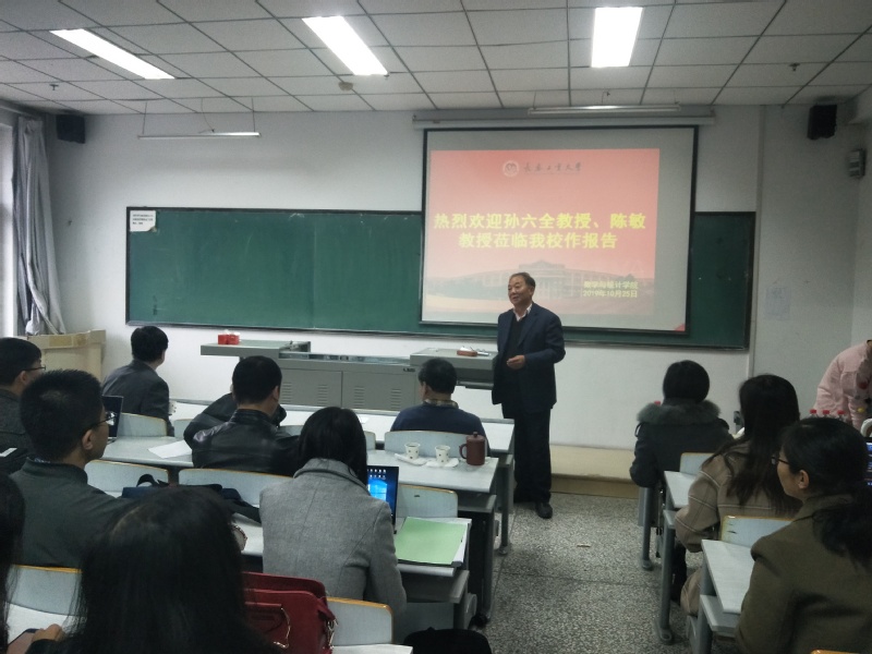 报告会上,孙六全教授介绍了删失数据的研究背景、研究方法、国内外研究动态、建模的方法与估计方法,分享了他近些年以来带学生情况以及部分研究成果。告诉同学们本专业发展前景广阔,市场需要大量的统计学人才,一定要要好好好好学习,刻苦专研。孙老师的报告语言风趣幽默、内容通俗易懂,报告会现场气氛活跃,博得了在场人员的阵阵掌声。