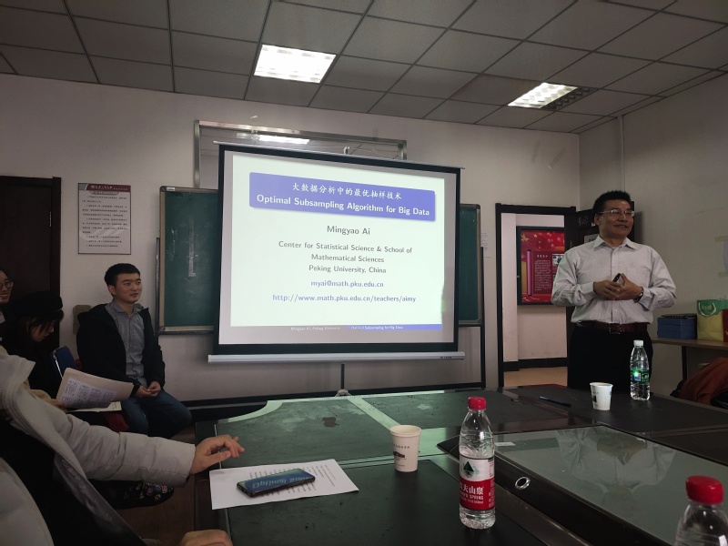 在报告中,艾教授首先基于大数据集的计算、储存及可视化问题,介绍了最优抽样技术的背景,简要回顾了广义线性模型的基本知识,并总结了前人就这一问题提出的最优抽样方案。艾教授考虑广义线性模型,使用Newton-Raphson方法获取出最大似然估计,还基于最佳子采样概率推导了子样本估计量的有限样本属性。由于最佳子采样概率取决于完整的数据估计,因此开发了自适应两步算法。利用该自适应算法建立了估计量的渐近正态性和最优性。最后,艾教授展示了不同模型设置下的模拟结果,与已有的方法相比,新方法的均方误差更小,且抽样用时更短。最后艾教授展示了两个实际数据的分析结果,也说明新方法的表现更好。