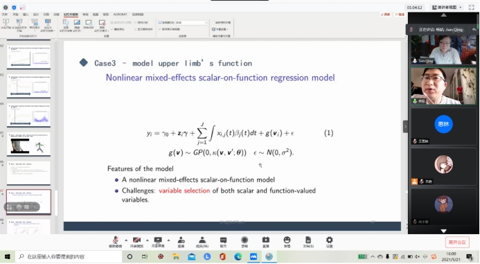 2021年5月 21日下午 3点,南方科技大学统计与数据科学系史建清教授应邀通过腾讯会议的方式为我校做了题为“Statistical Learning Methods on Wearable Devices and Precision Medicine”的专题报告。永利官网师生参加了报告会,yl23411永利集团院长王纯杰教授主持了报告会。
