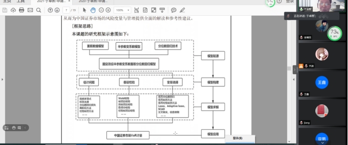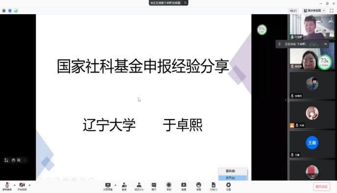 2021年10月12日下午2点,我院特邀中国现场统计研究会大数据统计分会理事于卓熙教授做线上学术报告,报告由学院统计系系主任杨凯老师主持,学院副院长刘铭老师、学院副院长李纯净老师、学院部分老师及全体研究生参加了本次线上学术报告会。