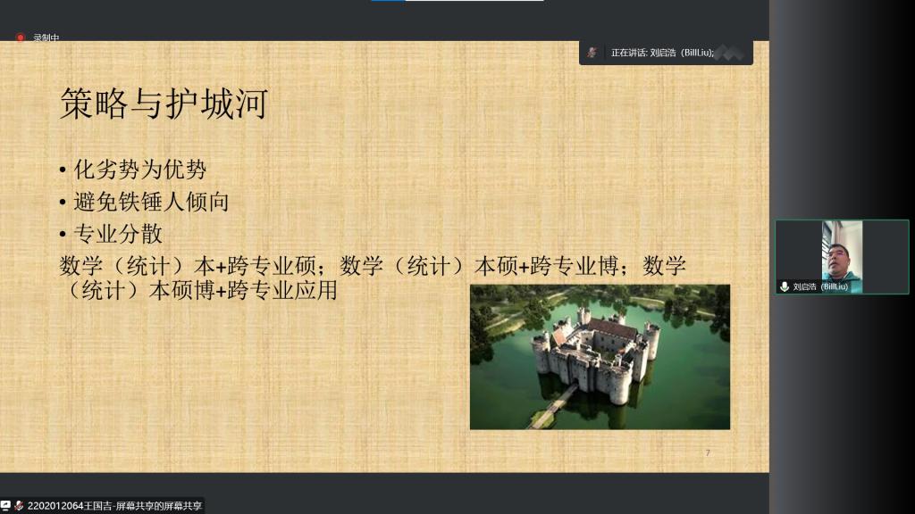 指出统计学科是万金油,在当前时代背景下,统计学被运用的十分广泛,并且在动手实践层面上也有一定的要求。接下来,刘启浩博士给出了一些有助于统计学同学们就业的一些策略,指出学习方向不能太窄,要学的广泛。