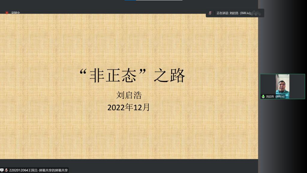 (通讯员:关迪)为了扩展学生的专业思维,提升专业知识的理论学习水平,2022年12月30日下午13:30,由科研处和yl23411永利集团主办的报告——“非正态之路”在腾讯会议线上举行,特别邀请刘启浩博士作为主讲人,基于刘博士本人的研究以及工作经历,为我校师生进行讲解,我院共有160多名师生前来参会讨论与学习。我院yl23411永利集团院长王纯杰、副院长李纯净等均参与会议讨论,会议院长王纯杰主持。