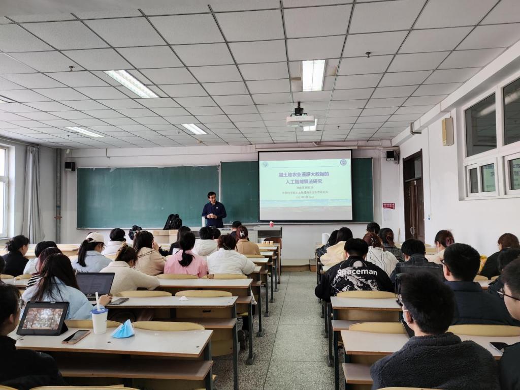 刘焕军教授的详细讲解过程中,既有理论,又有实务,讲座内容理念和实践相得益彰。刘焕军教授用通俗易懂的语言,由简到难、由浅入深地向同学们进行讲解,让同学们对黑土地农业遥感大数据的人工智能算法研究有了更深、更全面的认识和理解,整个教室充满着和谐有趣。讲座结束后,刘焕军教授还为现场提问的老师和同学答疑解惑,师生互动、互助、互进,不管是老师还是学生,通过本次报告都收获颇丰,受益匪浅。