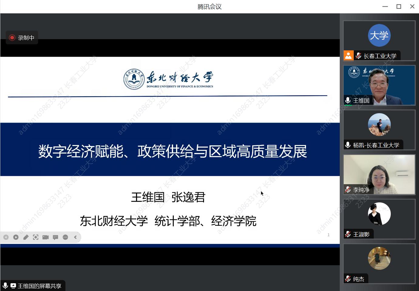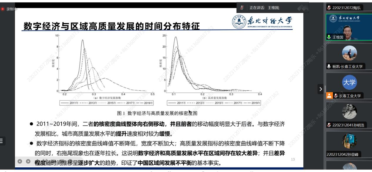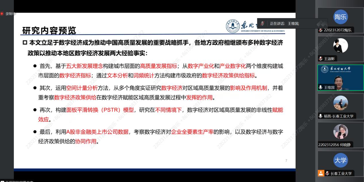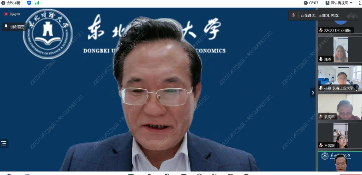 (通讯员:关迪)2023年11月6日下午19点30分,我院特邀东北财经大学经济学院王维国教授做线上学术报告,报告由yl23411永利集团副院长杨凯副教授主持,学院院长王纯杰教授、学院副院长李纯净副教授、学院部分老师、全体研究生参加了本次线上学术报告会。