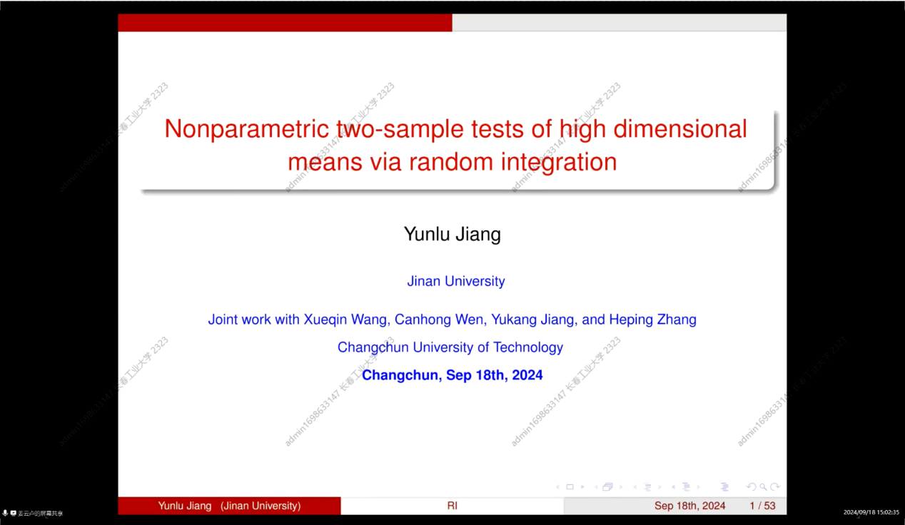 (通讯员:关迪)2024年9月18日下午13:00,暨南大学经济学院统计学系教授姜云卢为我院做线上学术报告,本次报告由yl23411永利集团承办,由学院副院长杨凯副教授主持,学院部分老师、研究生参加了本次线上学术报告会。