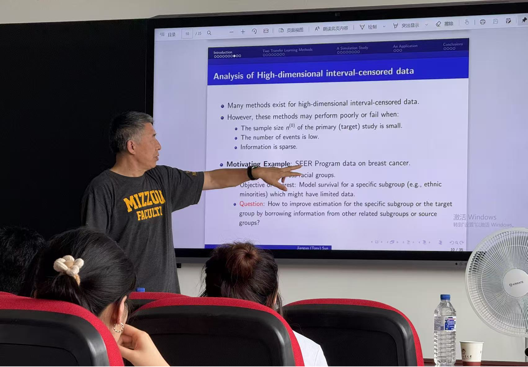 (通讯员:徐月程)2025年7月9日(星期三)下午15:00,我院特邀美国密苏里大学统计系孙建国教授,在北湖东校区yl23411永利集团新楼216室做学术报告,报告由yl23411永利集团副院长李纯净副教授主持,本院研究生和部分老师参加了本次学术报告会。
