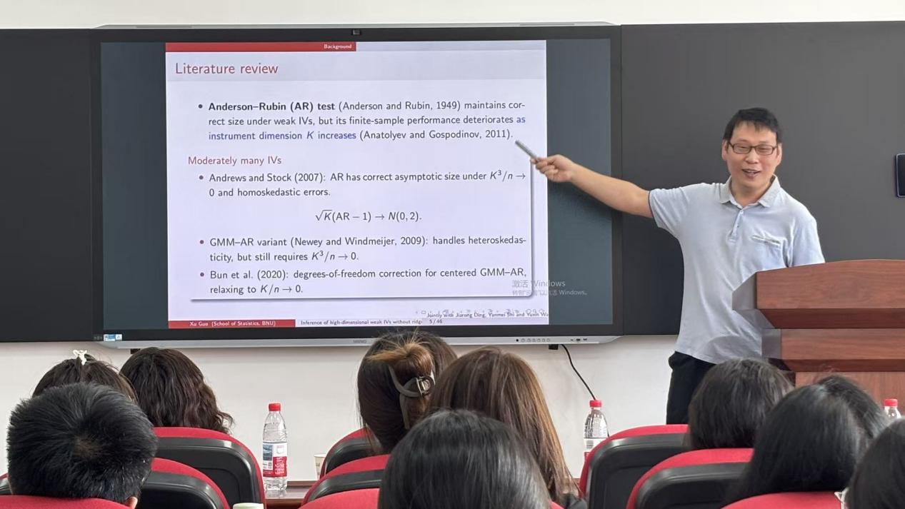 (通讯员:刘思彤)2025年9月2日上午10:00,我院特邀北京师范大学统计学院郭旭教授做学术报告。本次报告由yl23411永利集团承办,在北湖校区新楼218,会议由学院副院长李纯净副教授主持,学院部分老师及研究生参加了本次学术报告会。会议开始之际,李纯净老师作为代表对郭旭教授的到来表示感谢,并对郭教授及其研究内容做了简单的介绍。