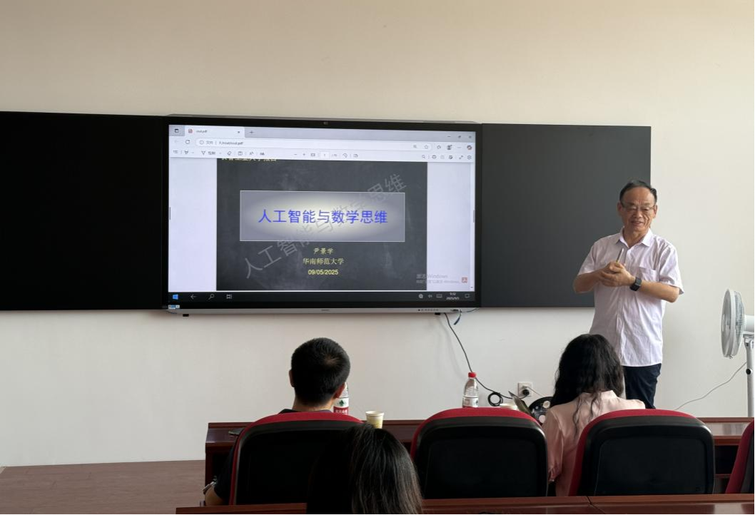 会后,尹老师同大家展开了热烈的讨论,尹老师对于大家提出的与该报告会相关的方法问题做出了专业的解答和建议。本次报告不仅拓宽了听众对人工智能与数学结合的认识,更启发了我们对数学本质的思考。它让我们认识到,在技术迅速发展的今天,数学教育应更加注重培养学生的逻辑思维与创新能力,而非仅仅依赖工具。同时,报告也激励数学研究者深入探索基础理论,在人工智能时代持续发挥数学的基石作用。
