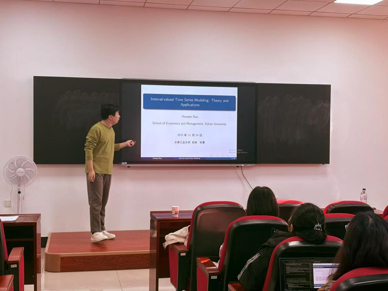 本次学术交流会包教授通过理论阐述和实例分析,系统呈现了区间值数据构建、模型假设、正则化方法及其在原油价格预测中的应用,拓宽了参会师生的学术视野,有效促进了学术思想的交流,为相关领域的学习与研究注入新活力。