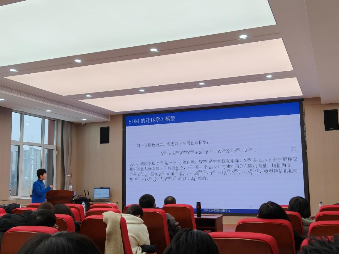 随后,于卓熙教授系统介绍了空间杜宾模型(SDM)的基础形式,这一模型是处理空间依赖性问题的经典工具。于教授强调,SDM是本次研究的理论基底,其数学架构为后续迁移学习框架的拓展提供了重要的模型支撑,也让在场的听众们直观把握了研究的技术起点。