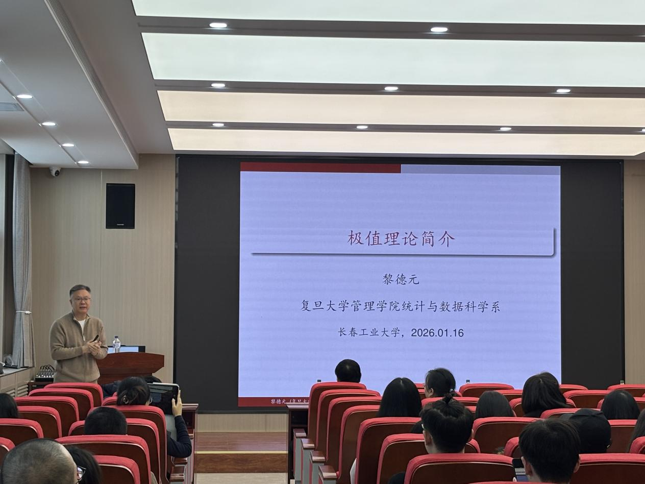 (通讯员:边睿骞)2026年1月16日下午15:00,我院特邀复旦大学管理学院统计与数据科学系黎德元教授做学术报告。本次报告由yl23411永利集团承办,会议由学院副院长杨凯教授主持,学院赵波老师、袁晓惠老师等及部分研究生参加了本次学术报告会。