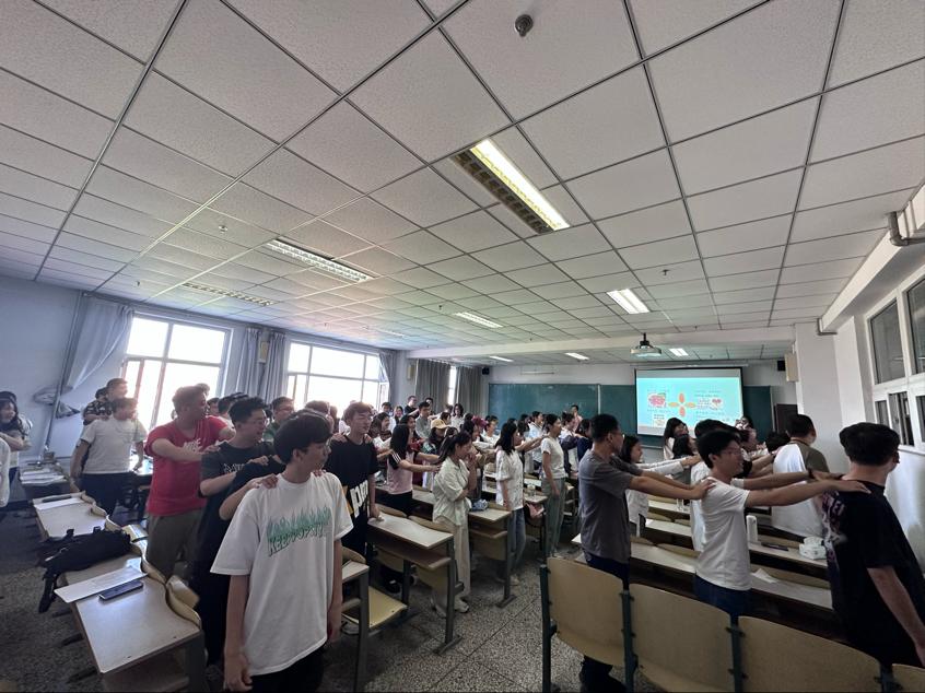 赵君围绕和谐与健康的标准、如何释放压力、适应研究生生活等方面进行讲授。他从如何促进同学之间的交流出发,以“互相捏肩”小游戏展开,带领同学们深刻了解交流的重要性。并将数学知识与心理健康相结合,向同学们剖析如何通过自我调节,具备良好的心理素质。他通过丰富的案例,为大家讲解高校常见心理问题的识别,详细分析了人际关系以及生活中常见的困惑和处理方式,引导大家学会了解同学的内心世界和如何释放压力。他提出心理健康是健康的重要组成部分,健康的身心是每个人追求美好生活的前提。在研究生阶段,当我们在面对各种各样的压力,如科研压力、经济压力、人际关系压力、就业压力等,同学们应该要学会像泄洪一样逐渐将压力释放,积极参与学校、学院组织的活动,学习生活劳逸结合按时休息。