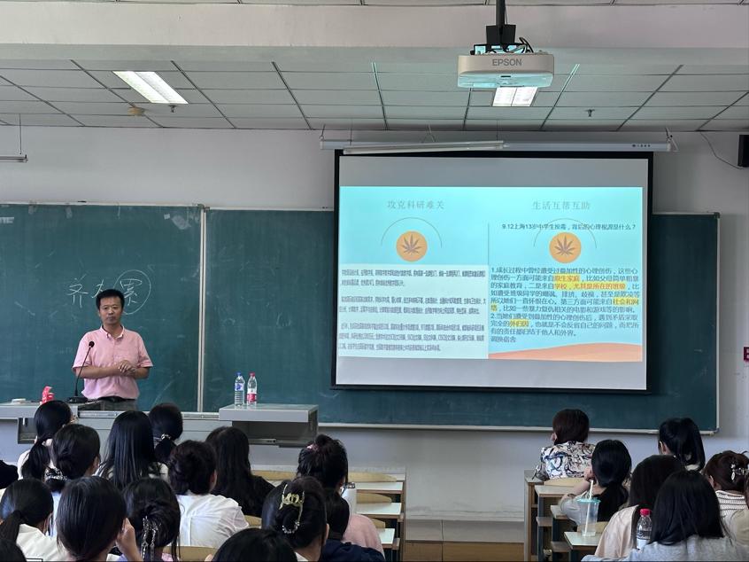 (通讯员:常迅晖)为培养2023级研究生心理健康意识、普及心理健康常识,树立健康心态,正确认识自己,激发潜能,培养良好的个性心理品质,增强社会适应能力,促进研究生心理素质与思想道德素质、科学文化素质和身体素质的全面协调发展。yl23411永利集团于9月15日下午在科研楼609举办了以“数学与心理”为主题的研究生心理健康教育专题讲座,永利官网心理咨询室赵君老师受邀主讲。yl23411永利集团副处级组织员兼研究生辅导员应艳、全体2023级研究生参加了本次讲座。