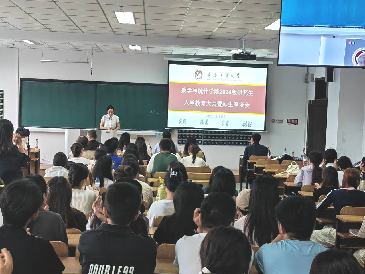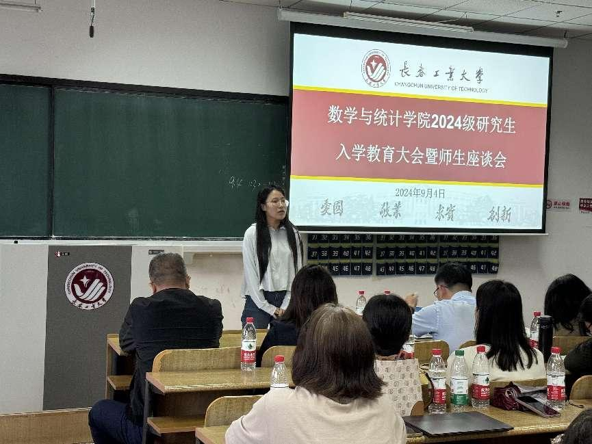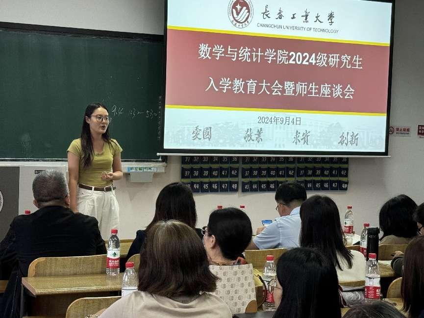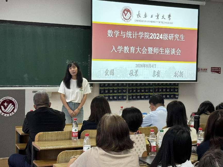 大会伊始,应艳老师介绍了出席本次大会的领导和老师,并对2024级全体研究生表示热烈欢迎。大数据科学研究院副院长兼yl23411永利集团统计系副主任王淑影老师和应用数学系副主任夏超老师就学院的学院简介、师资队伍、学科方向、发展历程、毕业生就业情况进行了详细介绍。