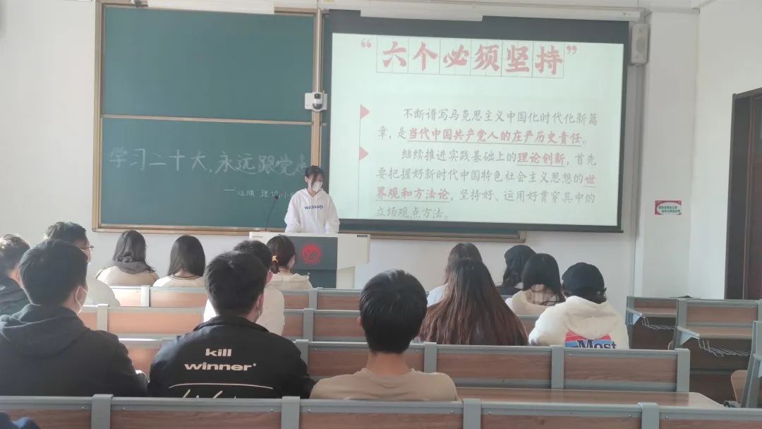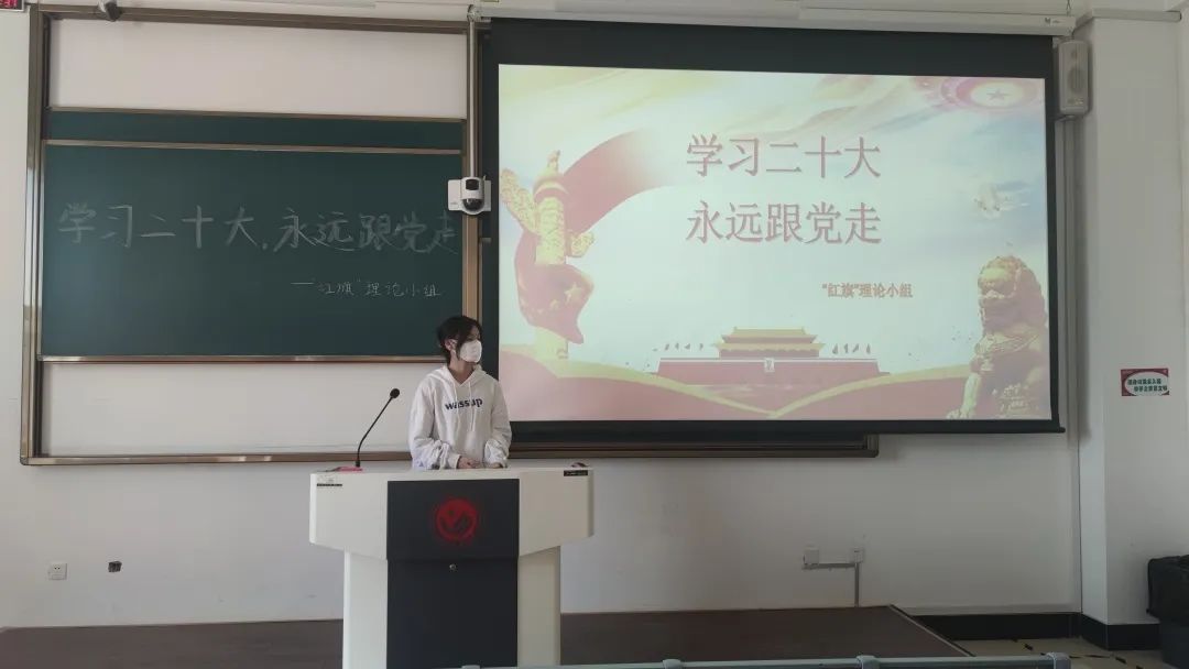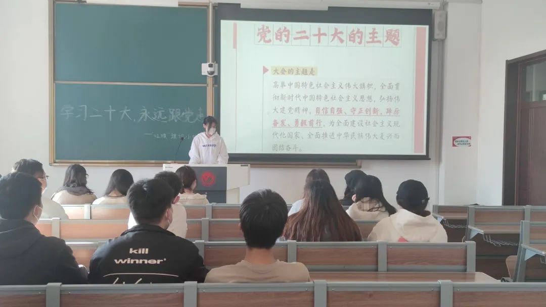 为使青年大学生们深入学习和理解中国共产党第二十次全国代表大会的精神,坚定理想信念,加强思想建设。yl23411永利集团组织理论学习社团于2022年10月25日13点在主楼128开展了专题学习会。会议由学院”红旗”理论小组组长邹晶洋同学主持,并带领小组全体成员们开展了理论学习活动。
