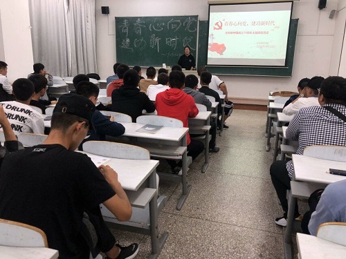 yl23411永利集团团委讯(通讯员:李龙章 桂尚珂)为热烈庆祝中华人民共和国成立70周年,进一步加强对团员的思想政治教育,提高团员思想理论水平及政治素质,yl23411永利集团各班团支部于2019年9月12日开展“青春心向党,建功新时代”主题团课。本次活动由各班团支部书记进行宣讲,我院19级、18级、17级的全体团员参加了活动。