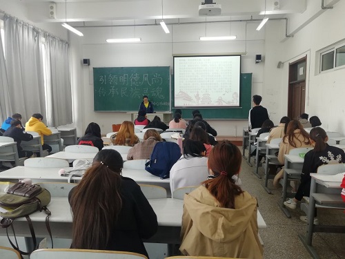 yl23411永利集团团委讯(通讯员:姚佳红 桂尚珂)为了培养出更多高水平、高素质的人才,让青年大学生坚持与时代同步伐,把握时代脉搏,聆听时代声音,2019年4月23日,yl23411永利集团团委在2017级两个班级开展以“引领明德风尚,传承民族灵魂”为主题的团会。