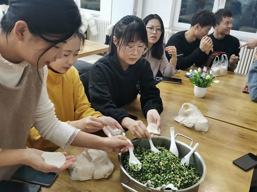 此活动得到了学校食堂的大力支持及餐饮工作人员们热心帮助。联欢第一项活动就是包饺子,同学们围坐在桌前,分工合作,包出各具特色的饺子。活动现场充满欢声笑语,气氛和谐融洽。几名学生被面粉摸花了脸,引得同学们捧腹大笑,形态各异的饺子更体现出了天南地北的同学风俗习惯。活动现场洋溢着青春的活力和团结合作的和谐氛围。期间郑老师也参与到包饺子的活动中,并为每桌同学包了饺子,以示送上最亲切的关怀和祝福。在同学们的团结协作、不懈努力之下,一碗碗热气腾腾的饺子在同学们的期待中端上了餐桌,同学们吃着香喷喷的饺子,李星晰等人还为同学们唱歌助兴,将活动现场热烈的氛围推向高潮。感受着yl23411永利集团大家庭的和谐温暖。