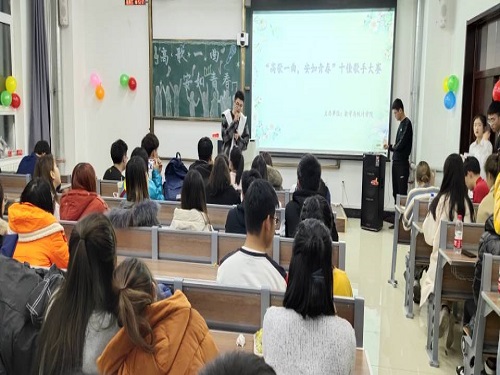 yl23411永利集团团委讯(通讯员:陈铭)为丰富同学们的课余生活,努力营造积极向上、健康文明的校园文化气氛,展示同学们的文艺风采。yl23411永利集团于2019年11月15日晚18时30分在主楼315教室举办了主题为“高歌一曲,安如青春”歌唱比赛活动。2019级学生李星晰、蒋石磊、等七名同学参加比赛,吕丹阳,陈晗同学担任赛会主持人。