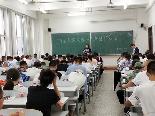 yl23411永利集团团委讯(通讯员:陈铭 桂尚珂)为了弘扬“勤学笃行,自强不息”的优良学风,培养大一新生自立自强意识。9月7日下午,yl23411永利集团在林园校区教图楼111教室举办了自立自强大学生典型报告会。此次会议由团委组织部副部长盖梦琳主持,大一全体同学参加了此次报告会。