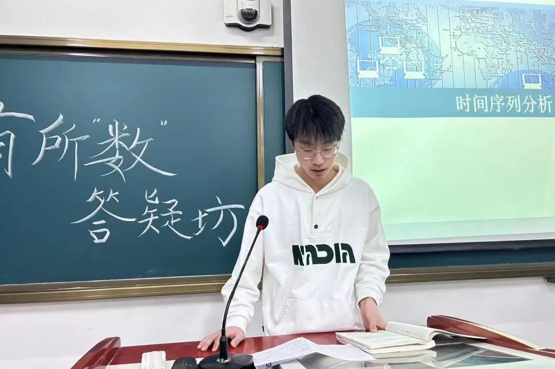 31日晚224教室内座无虚席,由林利桁同学介绍了所讲学科的知识背景,并且深入讲解了时间序列分析的相关知识。此外,林利桁同学耐心地回答了学弟学妹们问的每一个问题,还分享了他许多的学习方法和经验,这让在场的学弟学妹们受益匪浅。活动现场,林利桁同学的精彩解答赢得了阵阵掌声,他的专业素养和亲和力也给低年级学生留下了深刻的印象。