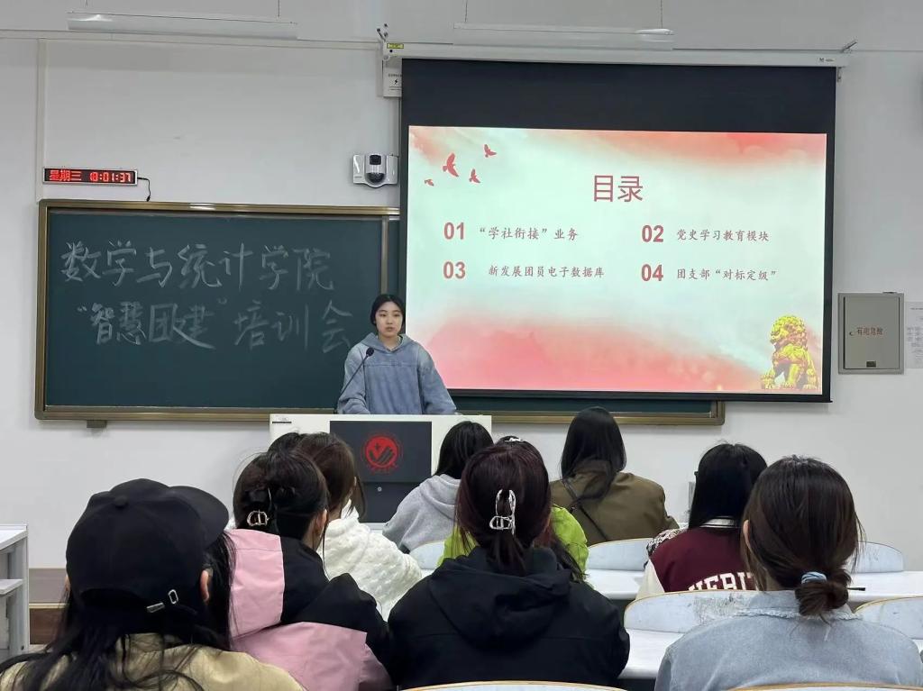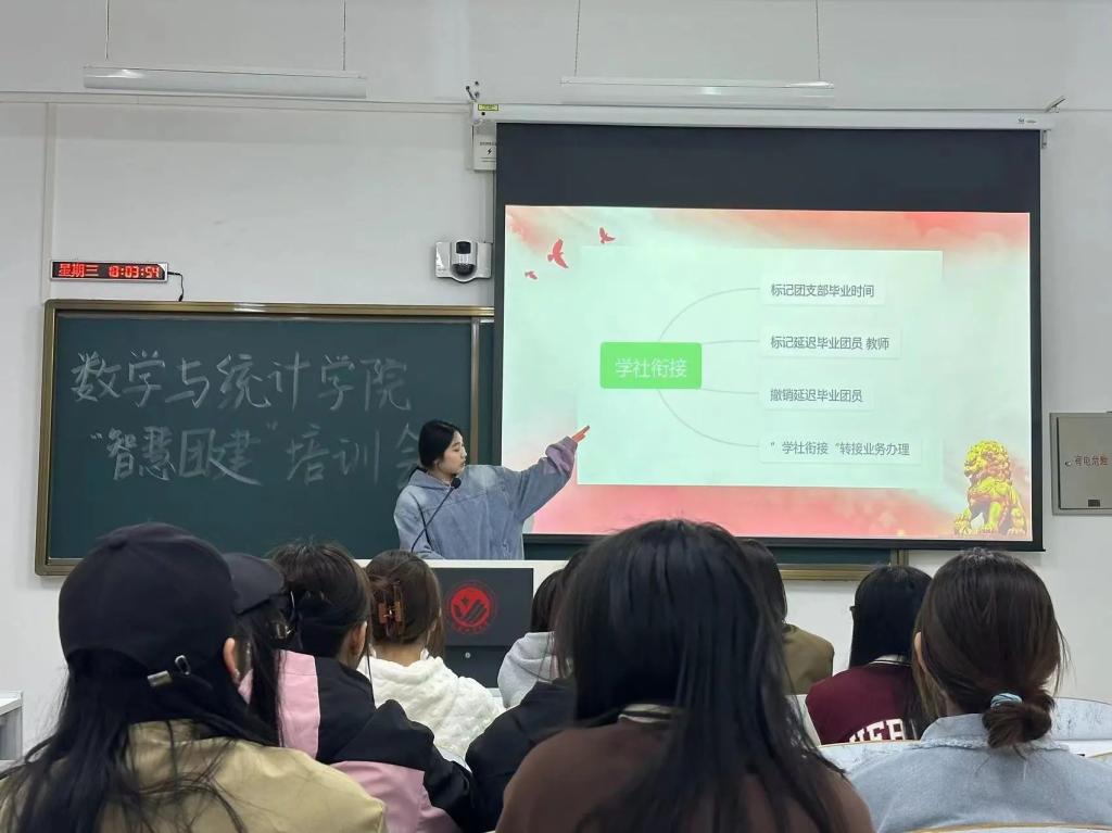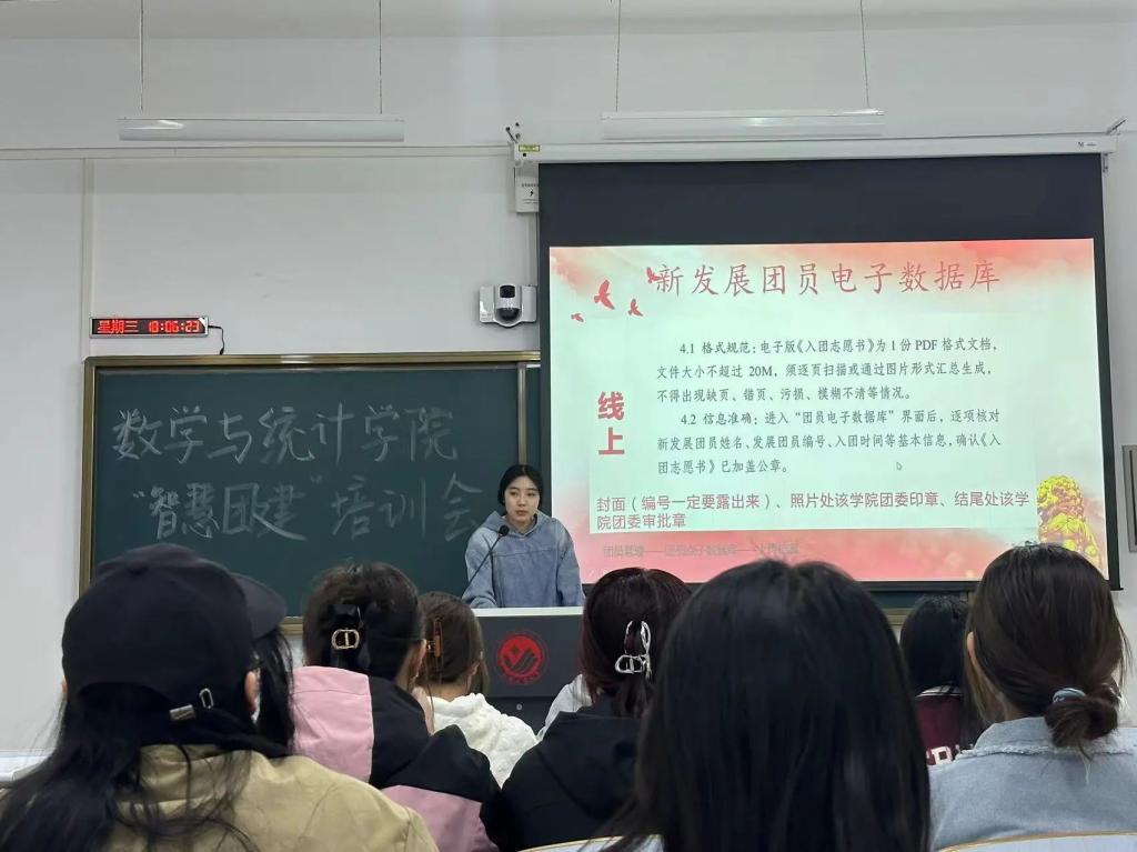 齐媛锋同学向各团支书讲解了智慧团建的四大板块“党史学习教育—新生团员电子数据库—学社衔接的业务—团员团支部的对标顶级”。