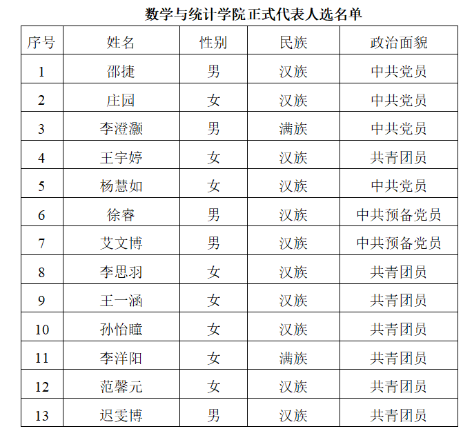 根据《共青团永利官网第二次代表大会代表选举工作办法》,经学院团员大会差额选举,现将学院团委选举产生的共青团永利官网第二次代表大会正式代表人选进行公示: