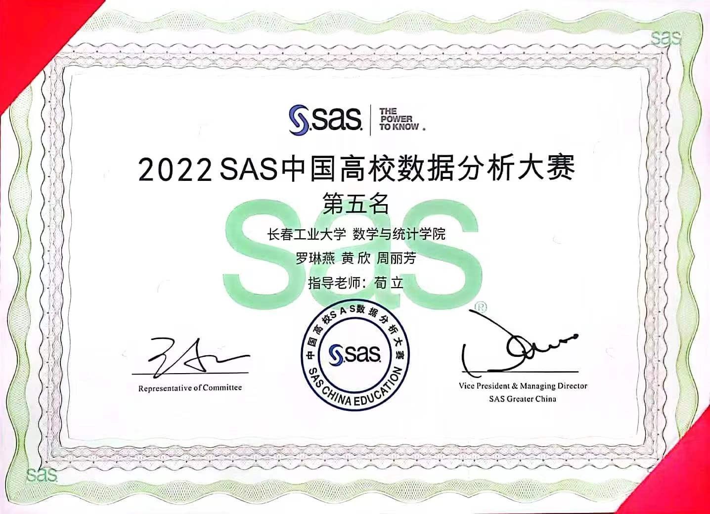 【通讯员屈红雁】2022 SAS中国高校数据分析大赛决赛于2023年4月16日至17日在河南省鹤壁市举行。在本次决赛中,我院共12支队伍入围,并取得了优异成绩。其中罗琳燕、黄欣、周丽芳三位同学组成的飒遍四方代表队更是取得了全国第五的历史最好成绩,为永利官网争得了荣誉。此外我院其余代表队也分获一等奖(20强)1项,二等奖(30强)1项,三等奖9项。