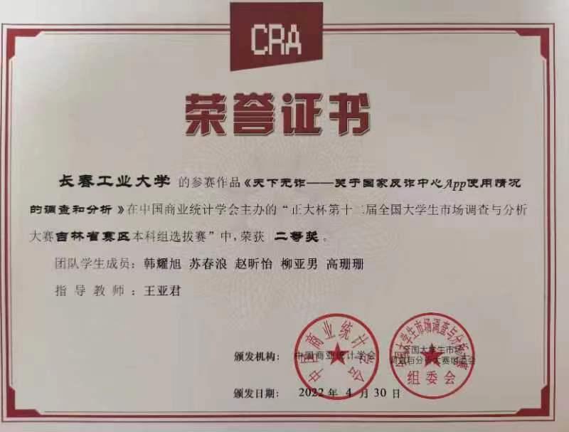 上一条:“正大杯”第十四届市调大赛吉林赛区研究生组选拔赛在我校举行