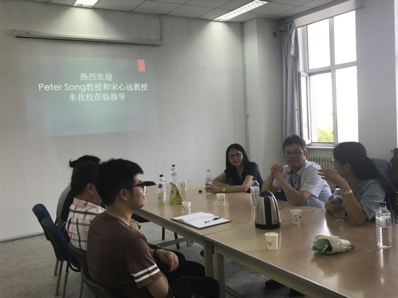 2018年7月1日下午4点30分在林园校区教学图书楼7楼yl23411永利集团4727室香港中文大学宋心远教授、美国密歇根大学PeterSong教授莅临我院做指导。会议由学院副院长王纯杰支持,学院副院长徐平峰、学院部分老师、研究生、及本科生和其他学院师生参加了会议座谈。