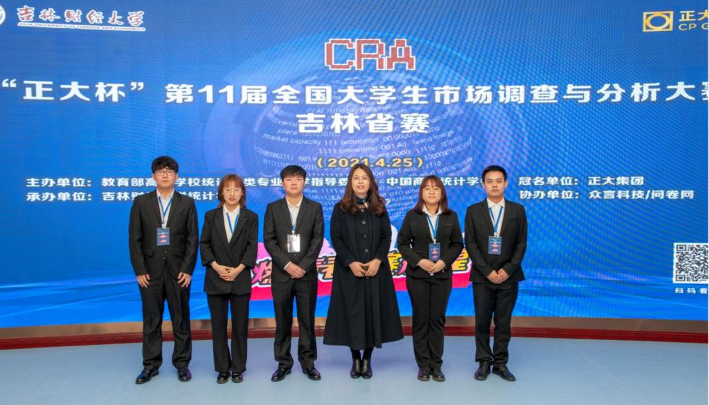 在2020年4月25日,“正大杯”第十一届全国大学生市场调查与分析大赛本科组吉林省赛决赛在吉林财经大学成功举办。通过国家网考、校赛、省初赛等一系列激烈角逐,由邰志艳老师、刘铭老师指导的2018级统计学专业郭祥道、卢思雨、王畅、马凯乐、2018级信息与计算科学专业闫新洋组建的林海雪原队进入最后一轮省赛决赛,获得本次大赛第六名的好成绩;由李纯净老师、胡茜老师、邰志艳老师指导的2019级信息与计算科学专业茆欣意、2019级统计学专业陈彦江、张伯宁、2018级统计学专业张伯宁、韩春峰组建的五个和尚队获得本次大赛的第十名,两支队伍最终获得国家级三等奖,我校另外两只队伍分获吉林省一等奖和二等奖。