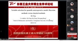 (通讯员:关迪)为庆祝学校建校70周年,2022年11月16日上午8:30,由研究生院、学科办、科研处主办,数学与统计学院承办的“校庆博士生学术论坛系列学术活动——yl23411永利集团分论坛”在腾讯会议线上举行,分论坛特邀东北师范大学郑术蓉教授、吉林大学朱复康教授、东北师范大学徐平峰教授、南京审计大学吕绍高教授为18名博士研究生的报告做点评。我校副校长林洁琼、校长江学者讲座教授宋心远、校学术委员会副主任董小刚、大数据科学院院长兼学科建设办公室副主任秦喜文、研究生院副院长李元、研究生院副院长高亮、yl23411永利集团院长王纯杰、副院长李纯净、统计系主任杨凯、统计系书记袁晓惠、应用数学系杜润梅、应用数学系书记王昭及全院师生参加了分论坛开幕式,会议由统计系主任杨凯主持。
