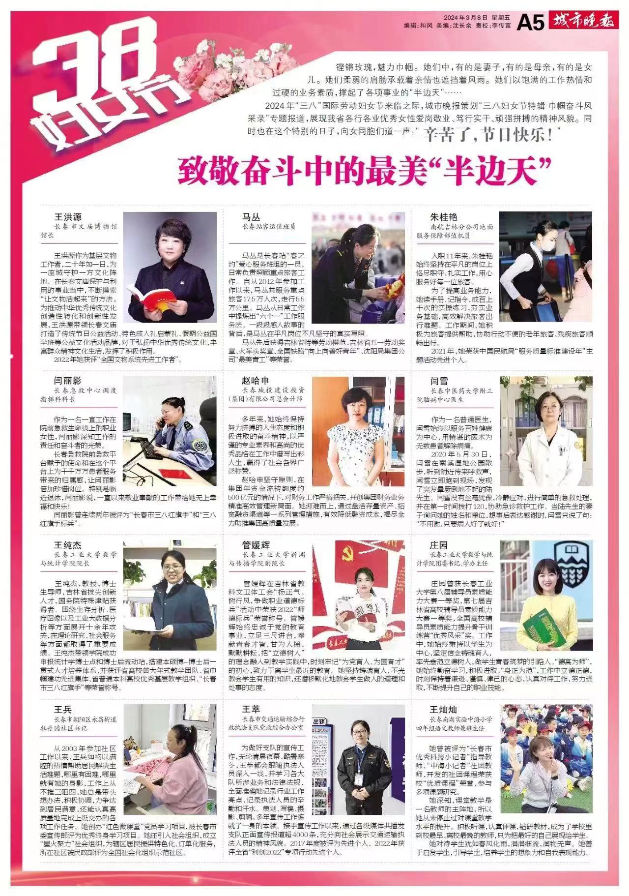 铿锵玫瑰,魅力巾帼。2024年“三八”国际劳动妇女节来临之际,城市晚报策划“三八妇女节特辑巾帼奋斗风采录”专题报道,yl23411永利集团院长王纯杰与yl23411永利集团团委书记、学办主任庄园这两位教师的光荣事迹被城市晚报刊登,展现了yl23411永利集团优秀女性教师爱岗敬业、笃行实干、顽强拼搏的精神风貌。