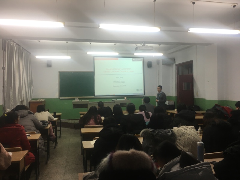 江源老师结合他多年的学习,教学和研究经验,向同学们介绍了有关偏差校正图形lasso的微生物网络估计以及近期研究进展。首先,我们找到一个有关微生物数量的数据,然后用每个微生物的比例进行一种变换,最后用glasso进行图模型建模。做完报告后,yl23411永利集团的老师和同学们与江源老师进行了互动,同学们及时提出了自己的疑惑,江源老师也对同学们提出的问题进行了详细的解答,又为同学们在这个方向上的学习给出了指导性的建议。并激励同学们要担负起数学与统计人才应有的使命,为我国的数学与统计学建设作出应有的贡献,也希望大家能够脚踏实地的学习理论知识,为数学与统计学的发展不懈努力。
