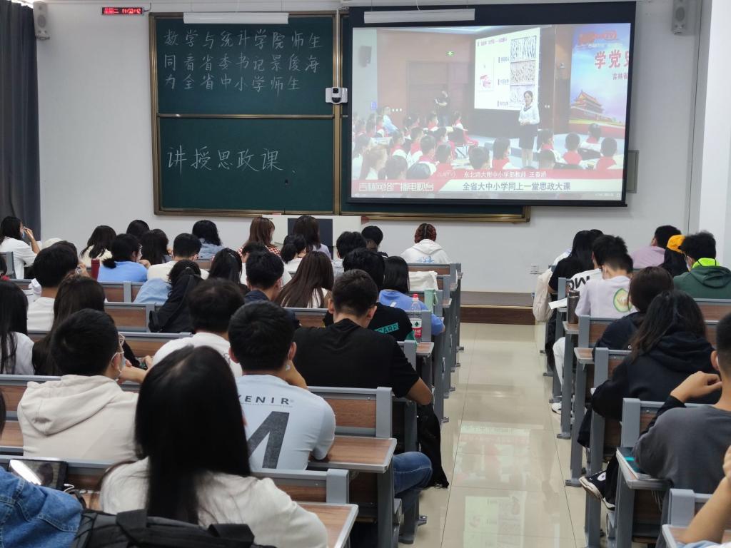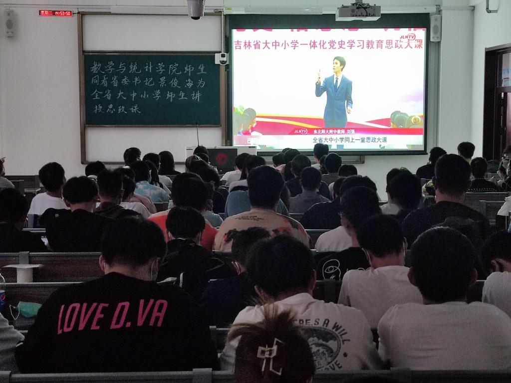 yl23411永利集团团委讯(团委讯:邹强 方成浩)为深入贯彻习近平总书记“七一”重要讲话精神和视察吉林重要讲话重要指示精神。9月14日,省委书记景俊海以“学党史、悟思想、筑信仰”为主题,为全省大中小师生讲授思政课。yl23411永利集团于2021年9月14日组织全院600余名师生分别在北湖东区主楼232、主楼116、艺术楼515三间教室集中观看方式和个人手机端观看方式参加了此次线上直播思政课的学习。