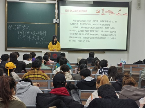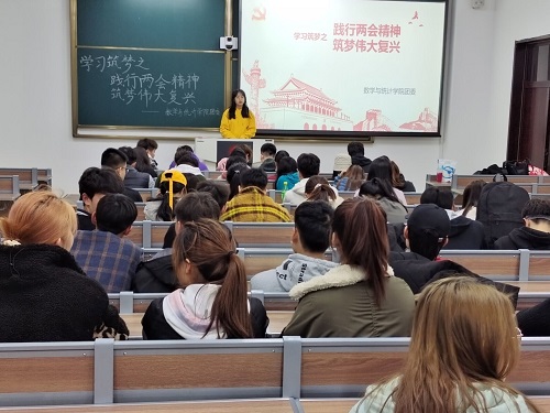 张辛楠为同学们详细的介绍了“两会”的含意,“两会”的会议的议程,认真学习并理解了做为一名新时代的大学生,如何在李克强总理的政府工作报告中确立人生目标和奋斗目标;同学们深刻地领悟到,在中国共产党的领导下,国家去年和今年以来的政府工作成果。过去的一年,面对纷繁复杂的国内外形势,面对各种风险挑战,面临疫情,在以习近平总书记为核心的党中央坚强领导下,全国人民齐心协力、苦干实干,经济社会发展取得来之不易的好成绩,经济结构不断优化,改革开放取得新突破,人民生活持续改善,民主法治建设取得新进展;实践再次证明,在中国共产党领导下,只要我们团结一心、众志成城,坚定不移办好自己的事情,让人民过上幸福美好生活,我国的脱贫攻坚战取得了全面胜利。最后,张辛楠呼吁广大同学们,身为大学生要认真学习贯彻全国“两会”精神,坚定信心,认真落实,牢记习近平总书记在寄语新时代青年中对新时代青年提出的寄语,“新时代中国青年要继承和发扬五四精神,坚定理想信念,站稳人民立场,练就过硬本领,投身强国伟业,始终保持艰苦奋斗的前进姿态,同亿万人民一道,在实现中华民族伟大复兴中国梦的新长征路上奋勇搏击。”