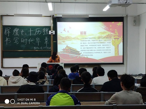 yl23411永利集团团委讯(通讯员:高帅帅)为了庆祝中华人民共和国成立70周年,深刻学习习近平总书记在中华人民共和国成立70周年庆祝大会上的重要讲话精神。yl23411永利集团于2019年10月23日下午在主楼446教室开展了“学习筑梦”系列活动之“辉煌七十历程,书写时代华章”主题团会。本次活动由180802班团支书张宁馨主持,大一、大二全体团支部委员参加本次活动。