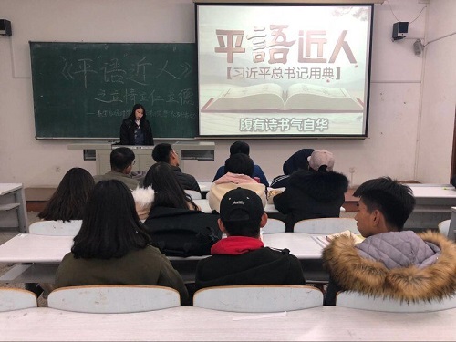 yl23411永利集团团委讯(通讯员:卢继迎 姚佳红)为了不断培育同学们对学习筑梦活动的原动力和新理论内容,让同学们依托学习筑梦系列活动全面提升青年大学生的综合素质,发挥学以致用的实效。yl23411永利集团团委于2018年10月28日在教图楼309教室开展“学习筑梦”系列活动之“《平“语”近人》之立情,立仁,立德”。学院2018级主要学生团干部参加本次会议,17级团支书林思扬担任会议主讲人。