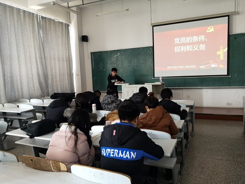 yl23411永利集团团委讯(通讯员:姚佳红 李龙章)为进一步加强入党积极分子的思想理论水平,端正入党态度。2018年12月19日中午,yl23411永利集团在永利官网林园校区教图楼613教室组织了2018年第六期党课理论培训。本次培训由学生会主席马壮主讲,院本科和研究生的21名入党积极分子参加本次党课学习。